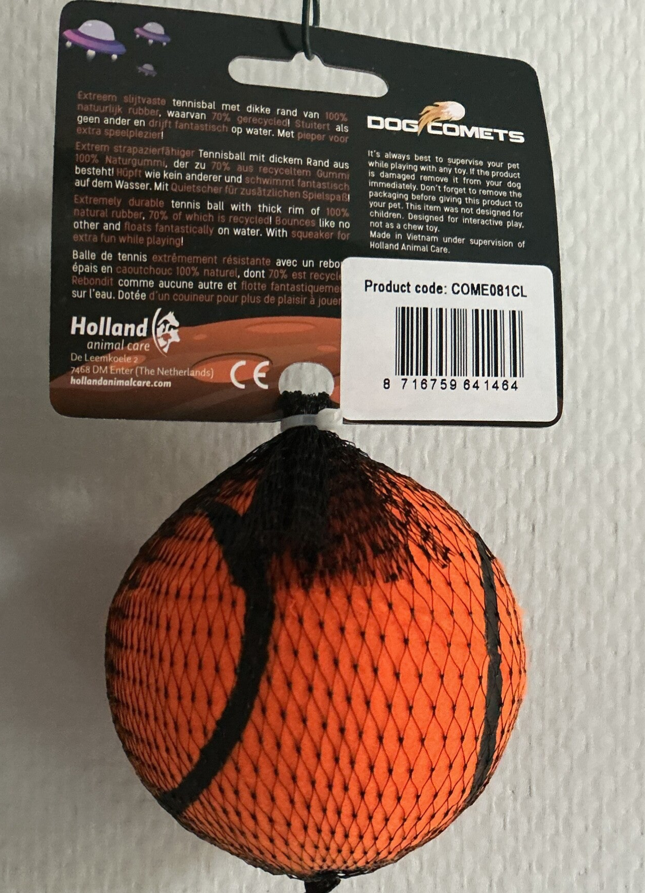 Extreem slijtvaste tennisbal met dikke rand van 100% natuurlijk rubber ,waarvan 70% gerecycleerd